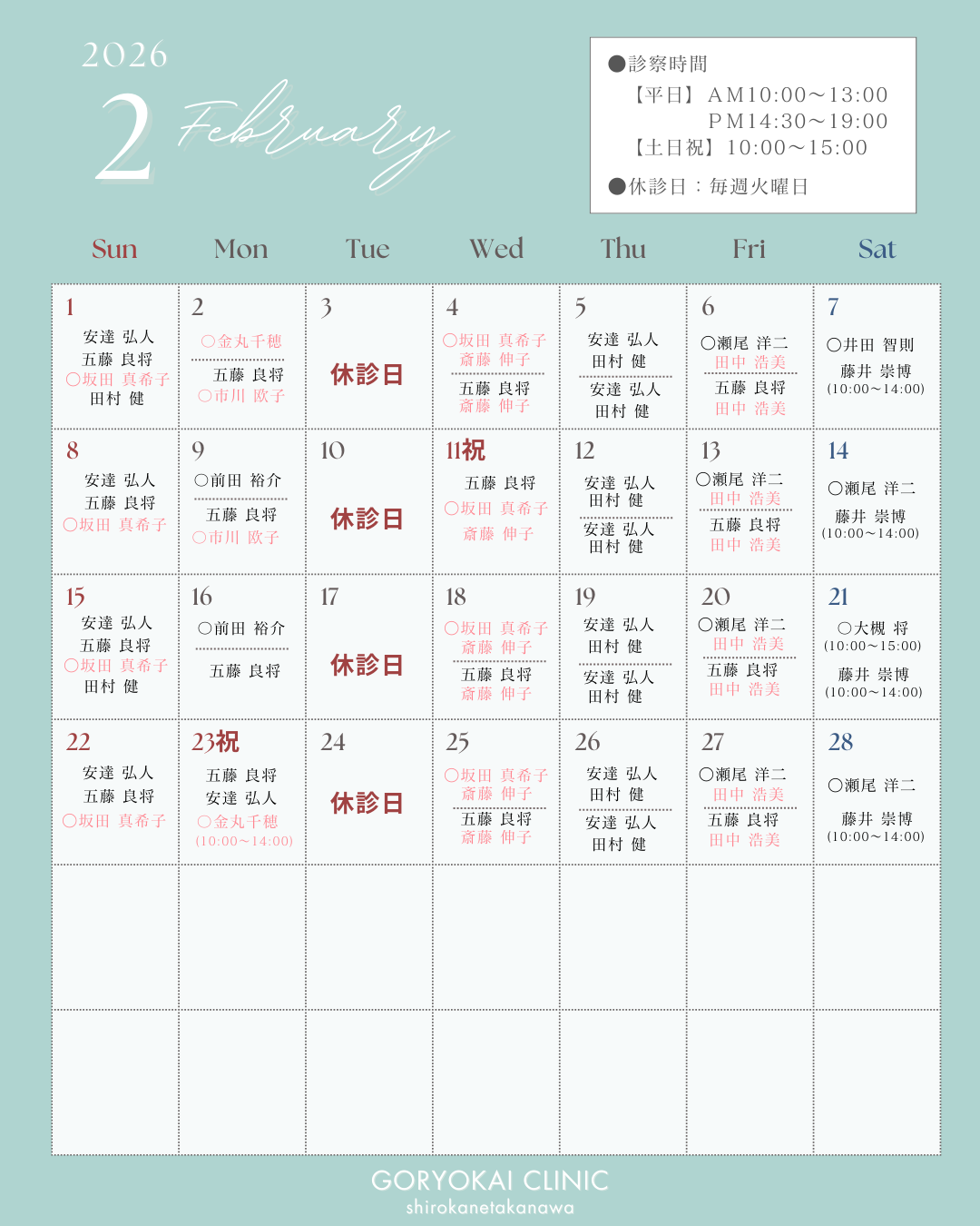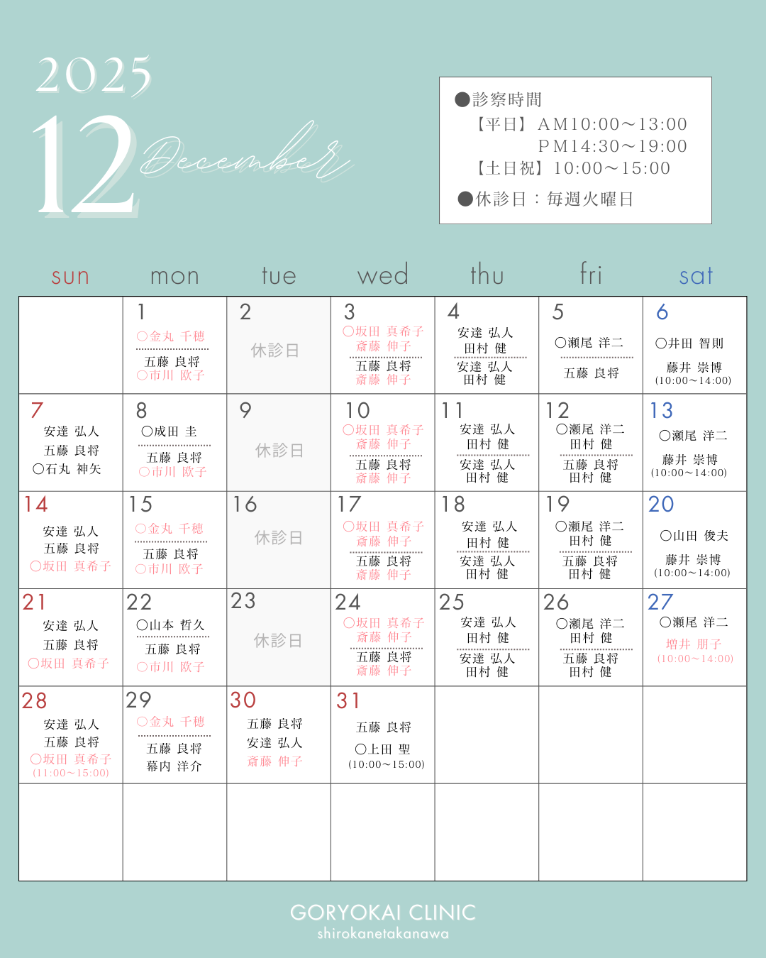 | 月 | 火 | 水 | 木 | 金 | 土 | 日 | 祝 | |