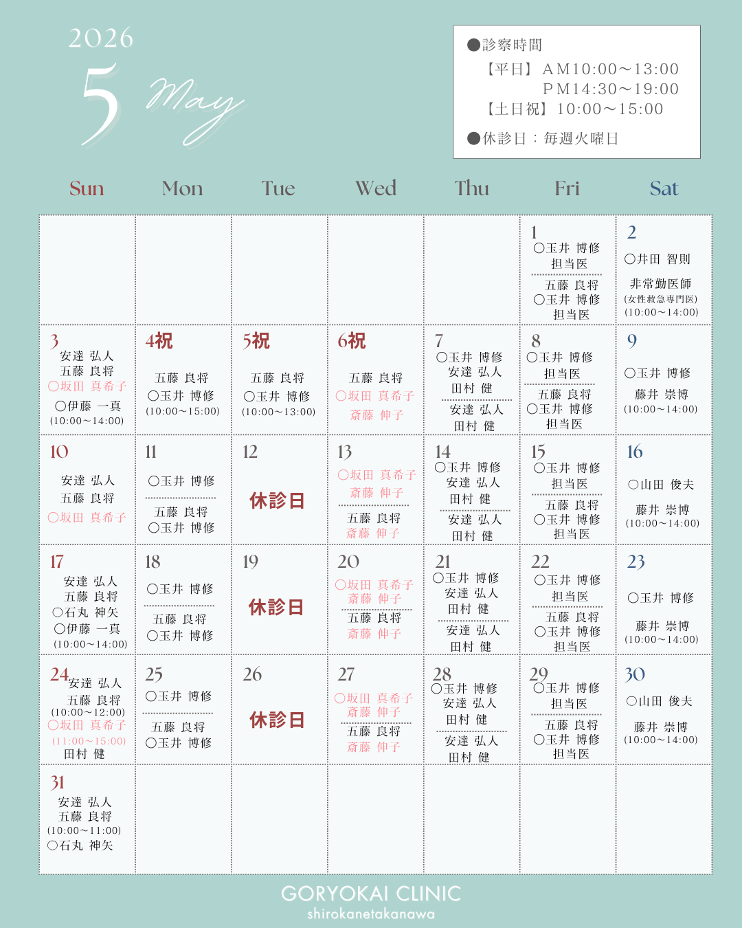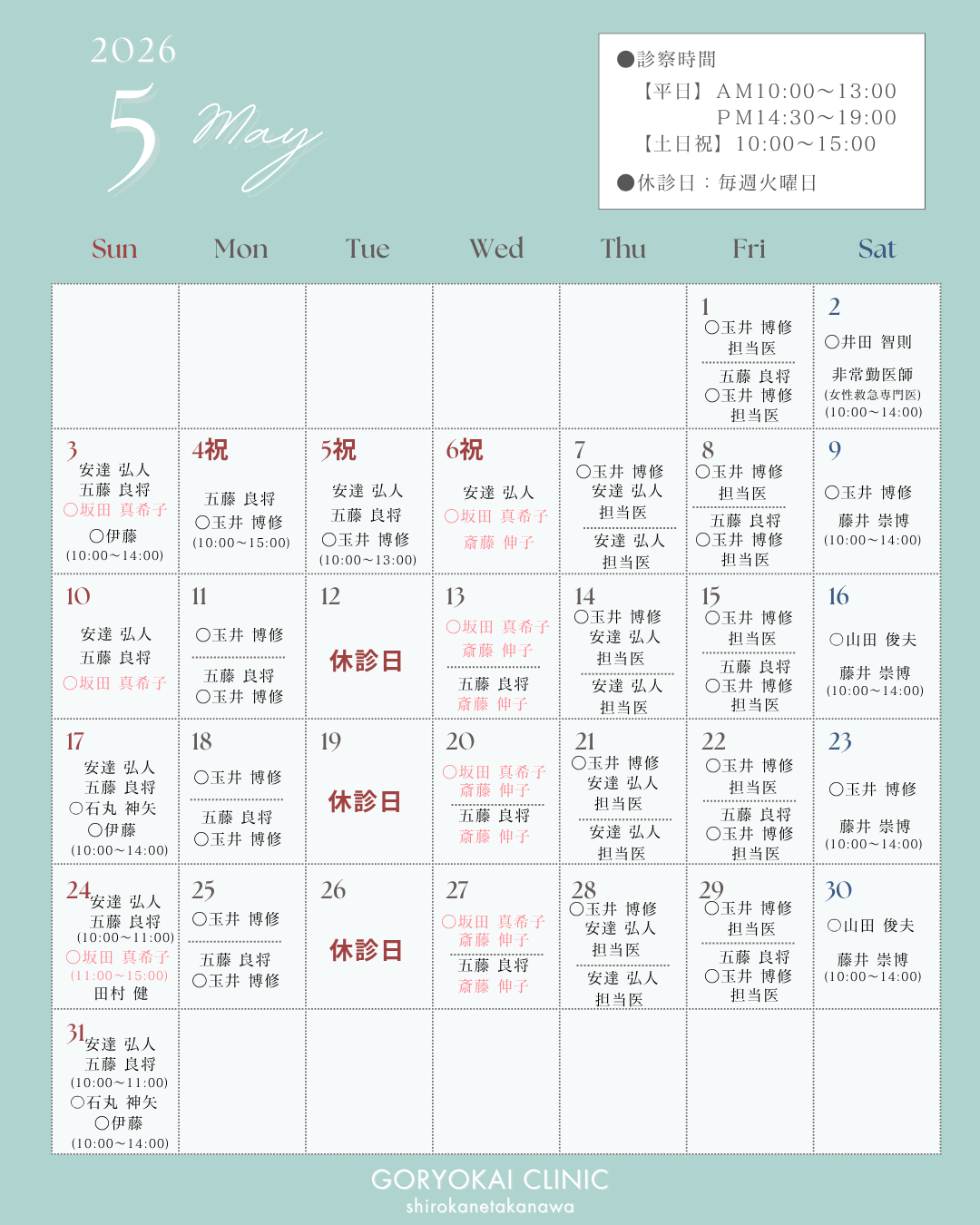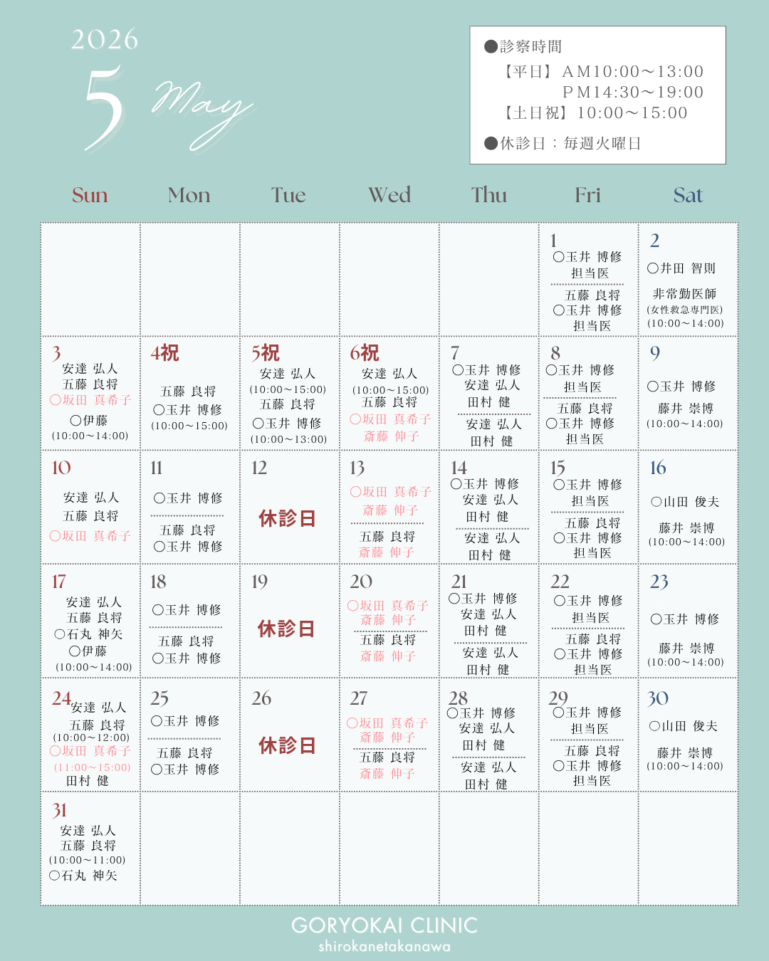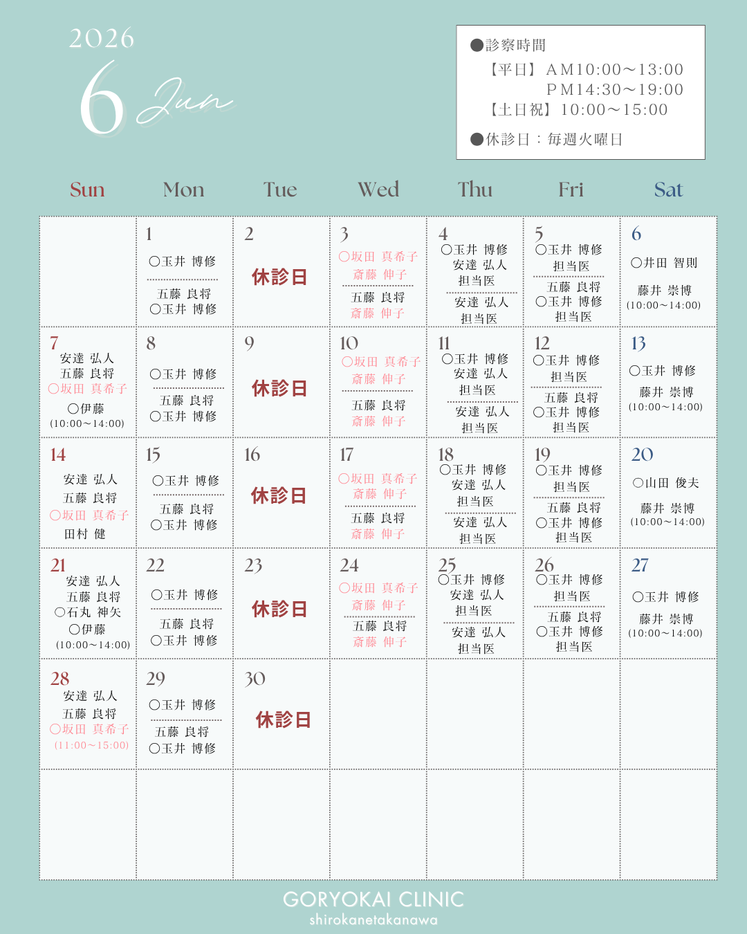 Goryokai Clinic Shirokane-takanawa, following the Takeuchi Internal Medicine and Pediatrics Clinic in Denenchofu and the Goryo Family Clinic Center Minami (formerly Hama Clinic) in Yokohama, opened its third location in Shirokane-takanawa in June 2023.